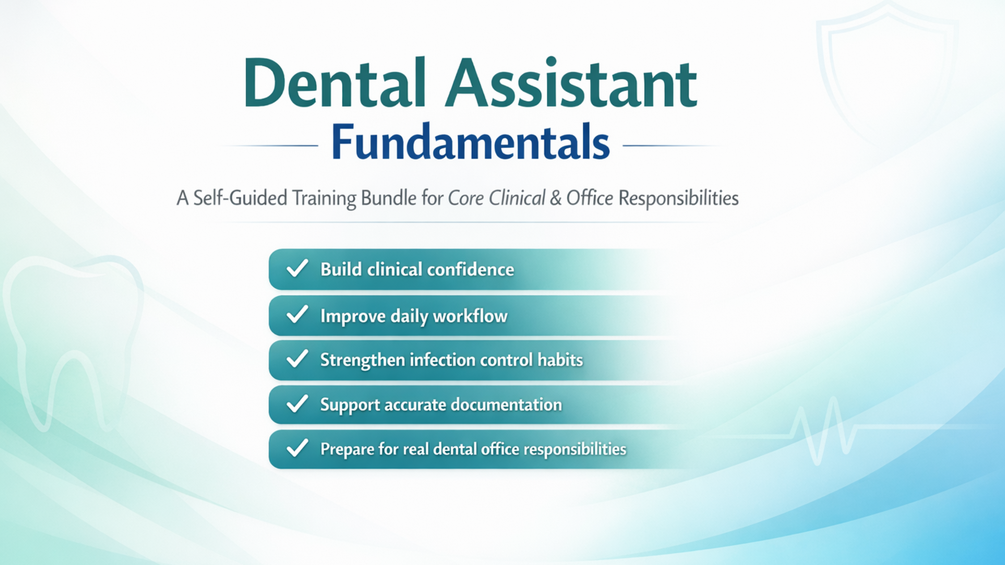 A self-guided fundamentals bundle designed to support dental assistants as they learn core responsibilities, workflows, and professional expectations in the dental office.